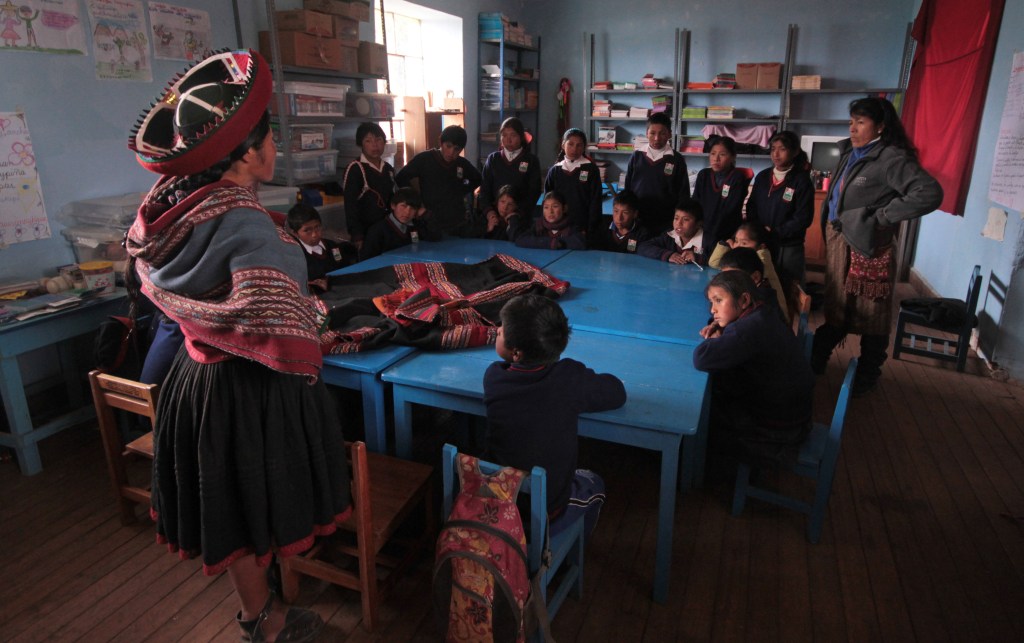 «La palabra pallay se utiliza en quechua para nombrar los dibujos tejidos, término que al mismo tiempo, significa cosecha o recolección de frutos. Esta similitud se puede observar al momento de tejer en el telar de cintura, donde para crear los diseños, se «recogen» hilos por pares o unidad. Así, las tejedoras cosechan imágenes de la misma forma que cosechan frutos de la tierra.»